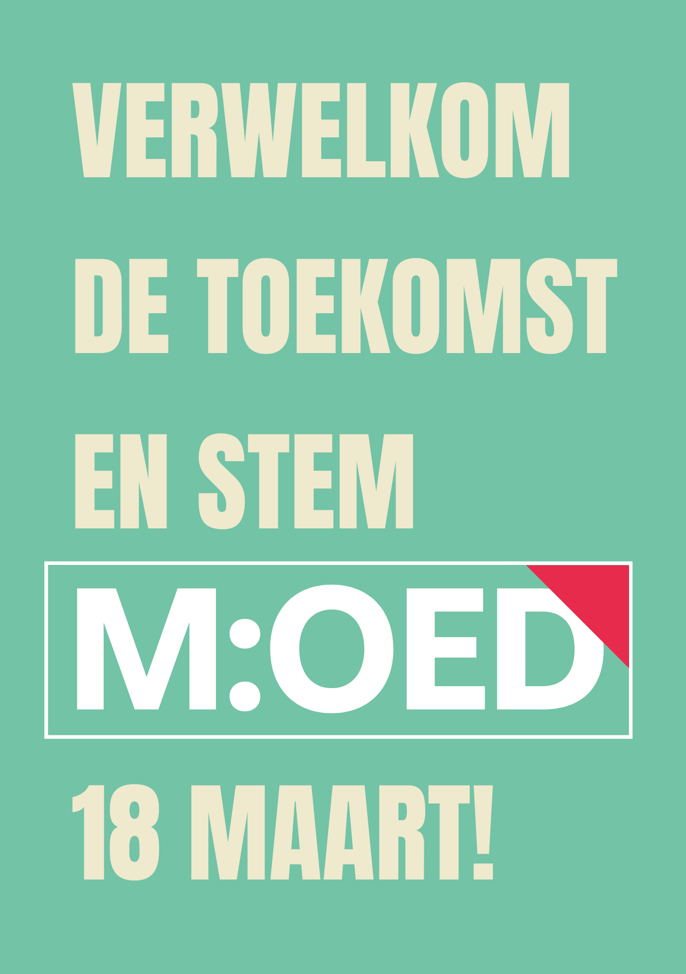 Doordat M:OED op transparante wijze tot haar besluiten komt hoopt ze als voorbeeld te dienen voor een inclusieve stad waar beleid en besluiten op alle niveaus op een oprechte manier tot stand komen. Veel inwoners voelen zich niet voldoende gehoord door het politieke bestel, en dat is niet eerlijk. M:OED wil er daarom voor iedereen zijn.